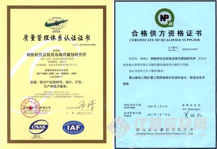 青岛海洋腐蚀研究所成立于1975年,隶属于中国钢研科技集团。青岛钢研纳克检测防护技术有限公司是在此基础上注册成立。是专门从事海洋腐蚀基础研究和防腐防污技术与产品研发、设计、生产、工程施工及服务的高科技企业。 通过了GB/T19001:ISO9001-2000质量管理体系认证,具有建设部颁发的防腐保温工程专业承包贰级资质,是青岛市认证的高新技术企业。